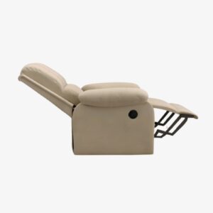 About Material & Finish:The Arvana recliner is upholstered with a luxurious suede fabric ensuring both comfort and durability. The tactile suede finish offers a soft, plush feel, inviting users to sink in and relax while exuding a touch of elegance and sophistication.