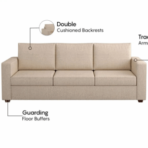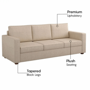• FeaturesPremium Upholstery, Plush Seating, Track Armrests, Double Cushioned Backrests, Tapered Block Legs