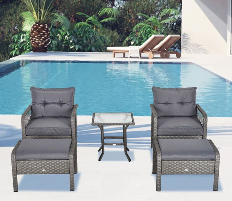 Wicker Seating Outdoor Patio Set (Light Grey)